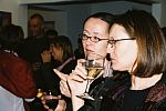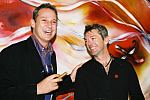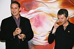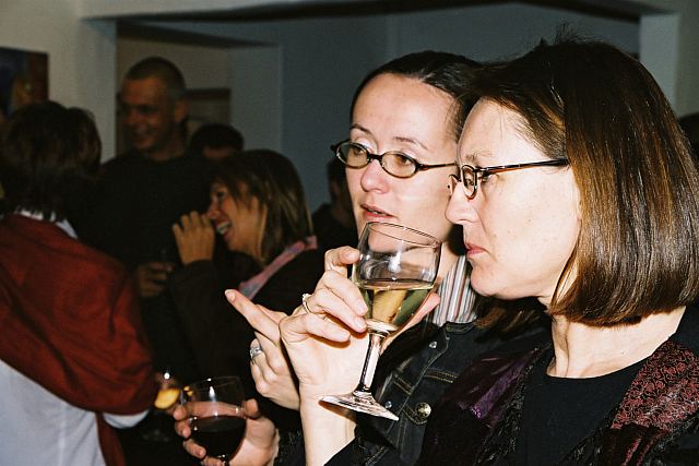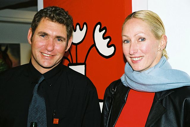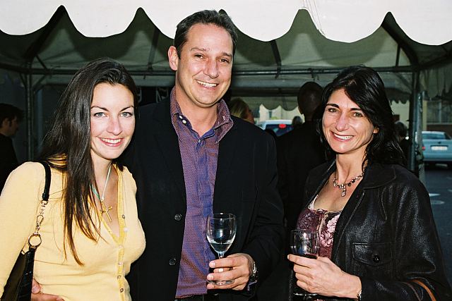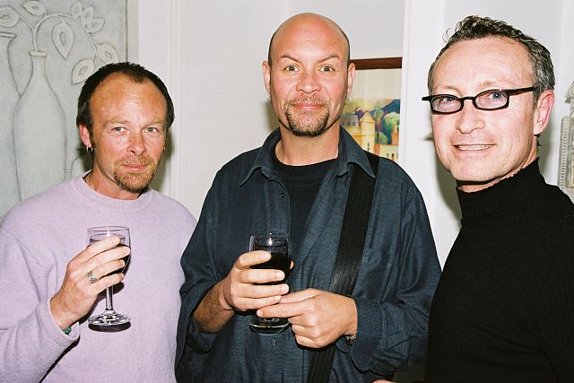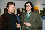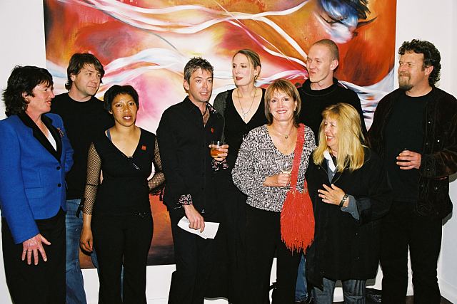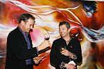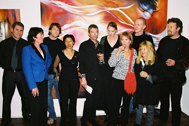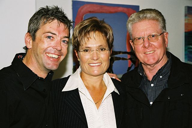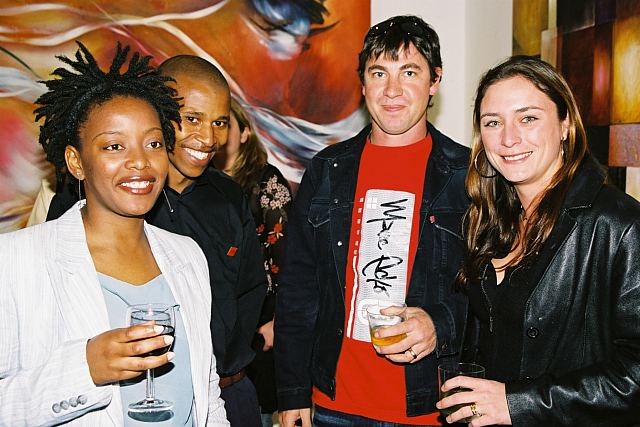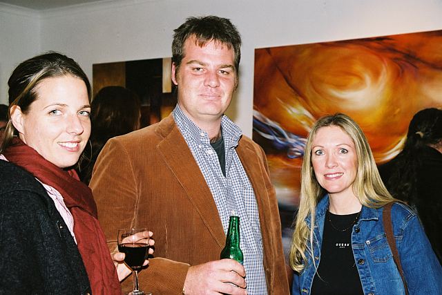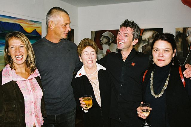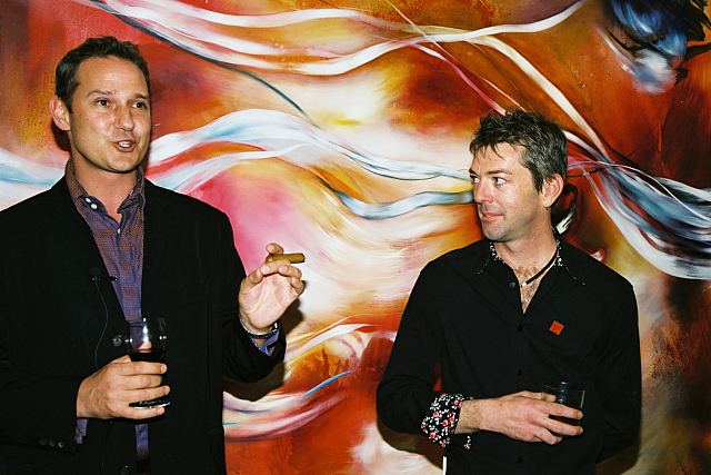 The Rossouw Gallery has open it's doors! A wonderful evening was experienced by more than 300 people (yes!) who attended the opening of The Rossouw Gallery on Friday September 5, 2003. Artists on exhibition included Tay Dall, Susan Mitchinson, A.S. de Lange, Richard Scott and more. What once was a hostel, is now a colourful gallery with a wonderful atmosphere conducive to the leisurely enjoyment of these works. Sponsors Standard Bank, Johnny Walker and Hamilton Russel Wines contributed unselfishly to make the evening even more enjoyable. Pictured here are Anthony Hamilton Russell, who opened the gallery, with Joshua Rossouw. The Rossouw Gallery will be open from 10am - 6pm week days and 10am -3pm on Saturdays and Sundays. Click on image to enlarge.