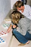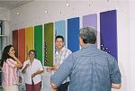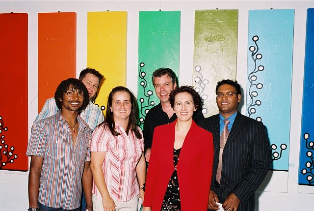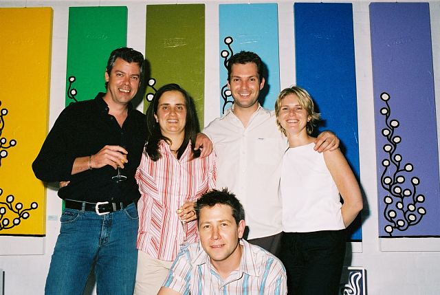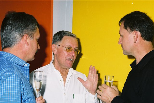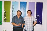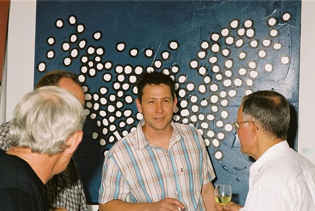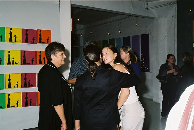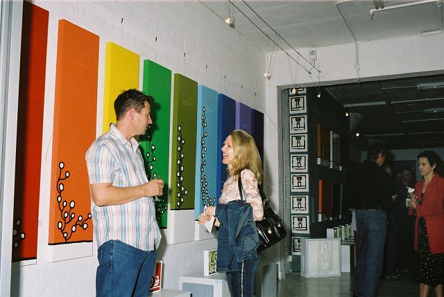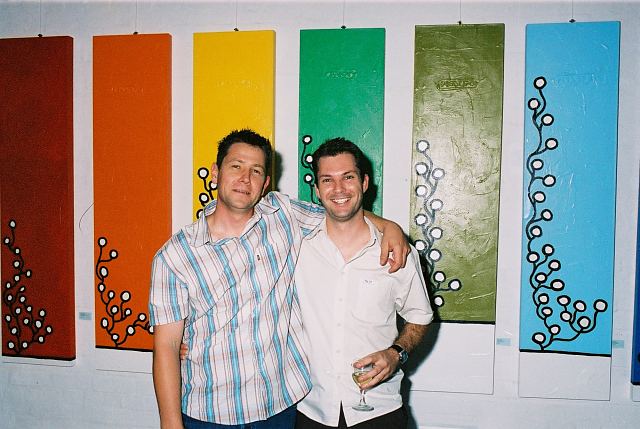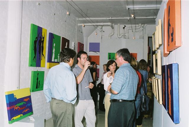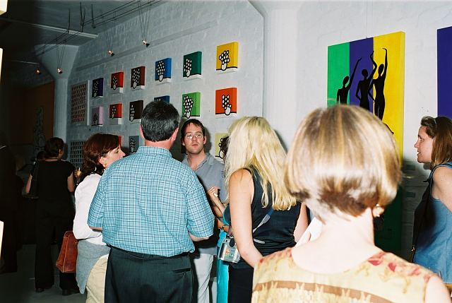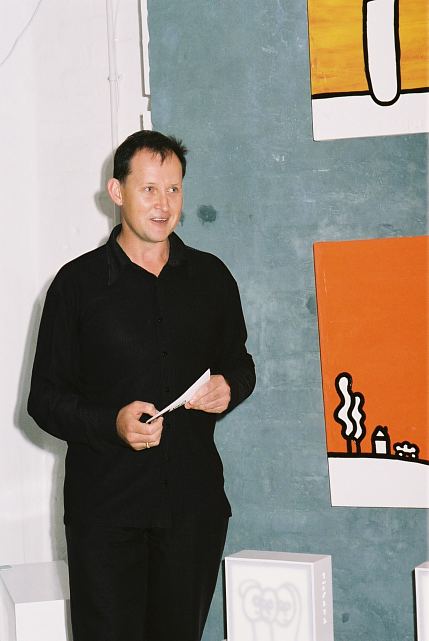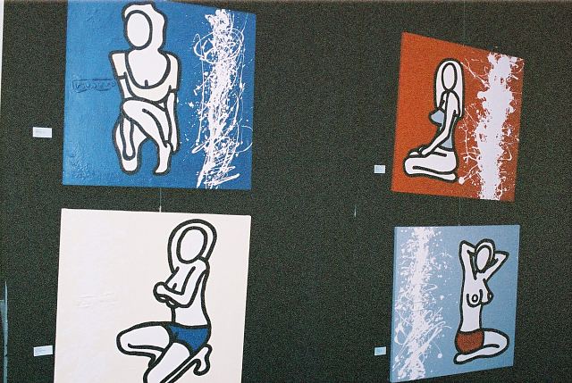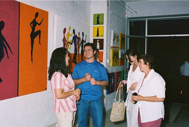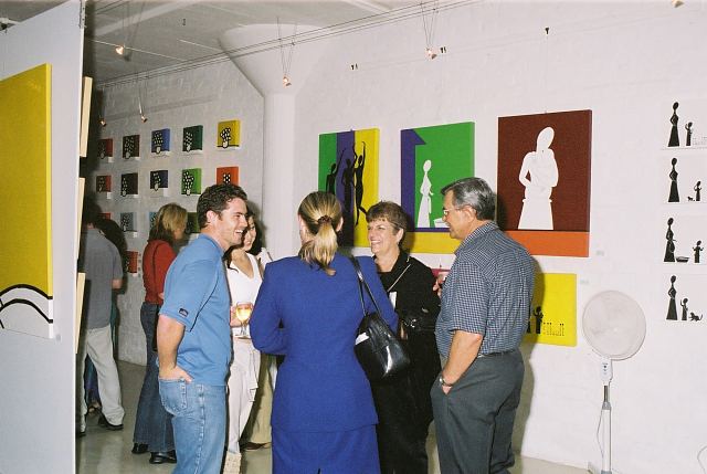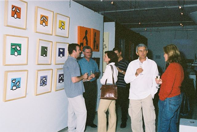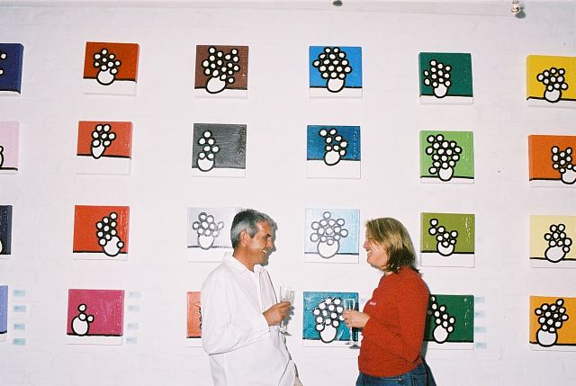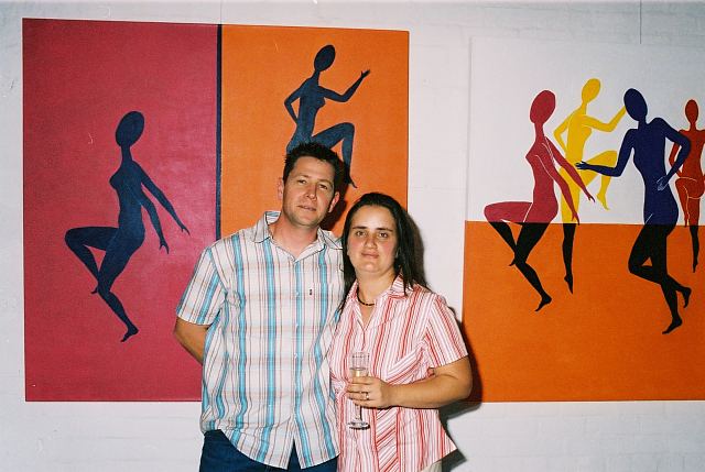 This exhibition is about two artists indulging in child's play while creating a finished product as the outcome for the world to enjoy. The first time I saw Richard Scott's work I knew that it would be loved. This is mostly because it is colourful, beautiful and fun, familiar and friendly, but also because it crystallizes the simplicity of life. As adults we often over-complicate things, fill our lives with busy. When we encounter a childlike viewpoint it delights us - the simple elements of a house, the outline of a figure, the suggestion of a hill, the cat drawn with one line - because it reminds us of how simple things were and can be. It gives us joy to see the world as a child might see it. And who wouldn't want to experience that pleasure? That is why Richards's work will continue to enchant and to please. And now he has found someone, in the artist Chris Basson, who has the same sense of delight in what they do, the same feeling of simplicity and clarity of vision. Come and be delighted. Glynis VEO