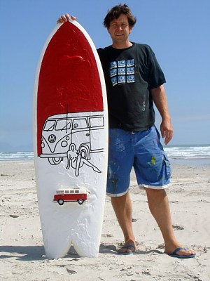 Celebrated South African artists were commissioned to weave their creative magic into 13 retro-styled surfboards made by Spider Murphy in Durban.