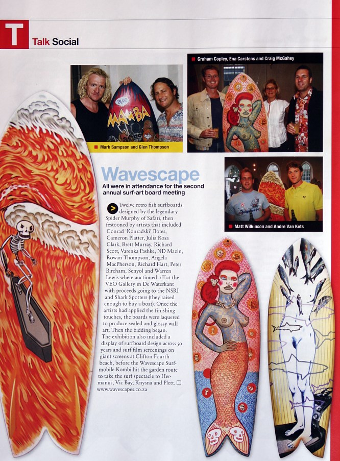 GQ Magazine coverd the Wavescapes surfboard event that took place in February. Richards board fetch the highest price at R140000, which wavescapes donates to the NSRI for new equipment like boats.
