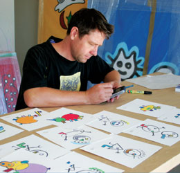 Scott draws and colours his creations on his cellphone, before Bluetoothing them to his PC to have prints made. His pieces have moved from smaller sizes to significant wall-sized paintings over the past few years and he has been invited to participate in two exhibitions in Belgium.