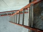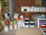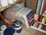 The building has been primed and is now ready for the bright orange paint. Yes, bright orange, my favorite colour, well only parts of the building.
