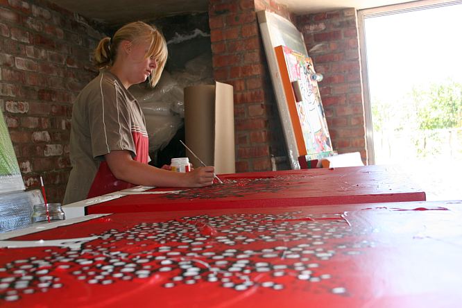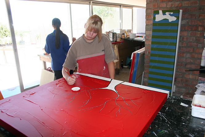 Each year Richard takes on a few students around the globe to assist in the studio for a week or two. in 2010 Richard will formalize this event under the Richard Scott Art Foundation. This Years assistants were Angelique Smal, a Grade 11 student from Durbanville High School in Cape Town. Amy Sorenson From Parklands College in Cape Town and Mi Sorensen from Denmark.