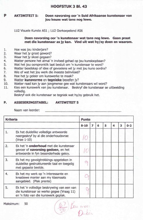 Monica Jean Landman from Klerksdorp High School chooses Richard, as her artist, for her school project.