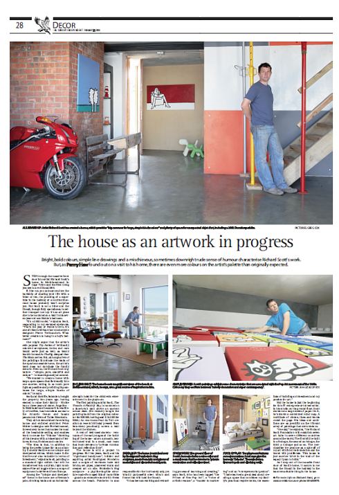 Bright, bold colours, simple line drawing and a mischievous, sometimes downright rude sense of humour characterise Richard Scott's work. But, as Penny Haw found out on a visit to his home, there are even more colours on the artist's palette than originally expected.