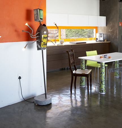 An enormous Paul du Toit creation (a recent birthday present from Salomien) practically covers a wall beyond the kitchen.