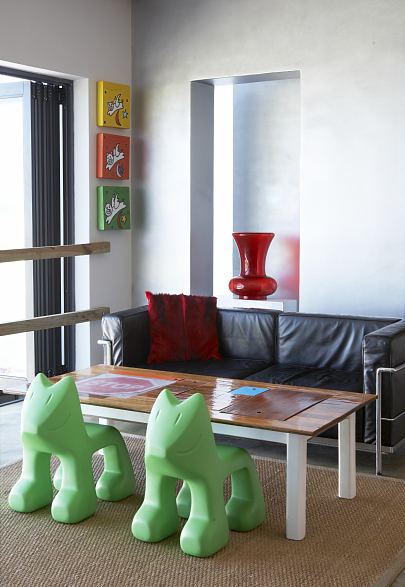 One might argue that the artist's own popular Toy Series of brilliantly coloured aeroplanes, trains and cars would serve just as well, as would Scott's Cat and As The Pig Jumped Over The Moon series. But, although a few of his paintings illuminate the walls of the spacious seaside home, the artist's work does not dominate the family domain. Even so, the Richard Scott signature - "simple, pure, colourful and unique" - is unambiguously all around.